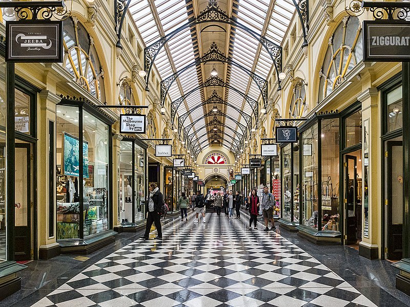 – Royal Arcade 1870: Enclosed lanes, retail design, the oldest arcade in Australia, automatons.